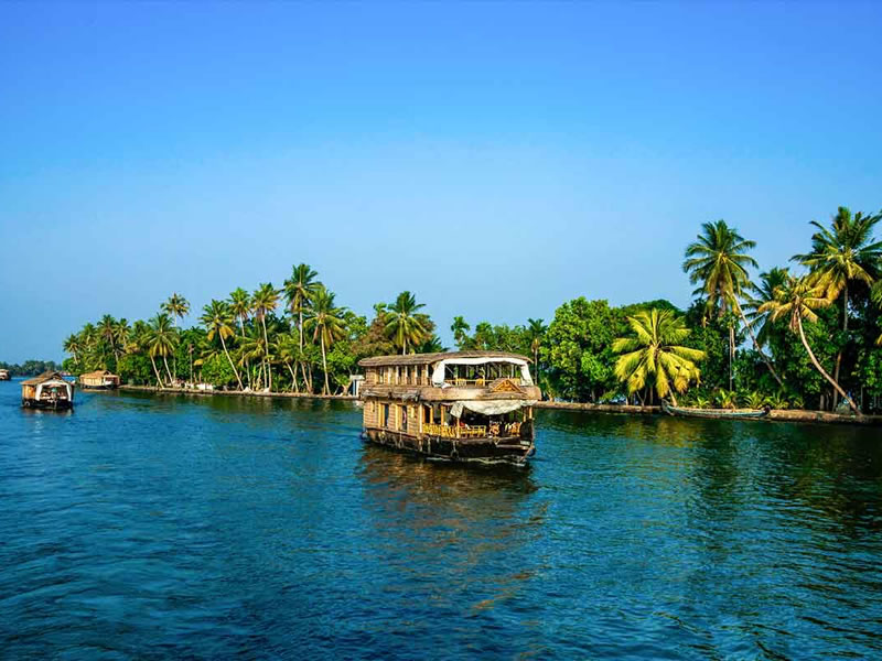 Formerly used to transport rice and spices houseboats, directly inspired by Kettu (swallams (“boat tied with ropes” in the local language), are now the happiness of travelers with their wooden shell oiled walnut cashew and maintained by coconut fibers, their bamboo roof and palm leaves, these large barges of about twenty meters are a means of transport as peaceful as warm.Ideal for a quiet adventure to discover the backwaters. Night on board.