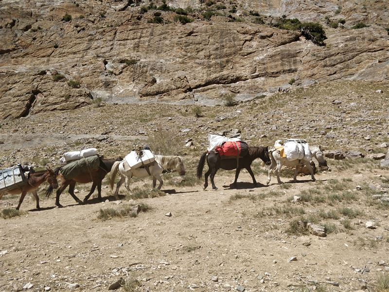 After these quiet days in the Padum Valley, here we go for great milestones … Climbs, descents and pass passes will succeed. The trail moves away from the river and climbs first to Parfi La in a beautiful atmosphere of mineral colors, with views of the Zanskar flowing north. From the pass, a steep descent leads to the bridge over the Oma (3400 m) that we cross before going back to the Snertze camp. Shortly before reaching our evening stage, the trail is pretty dizzying about 200 meters; we must remain cautious! But the camp is nearby for a well deserved rest.