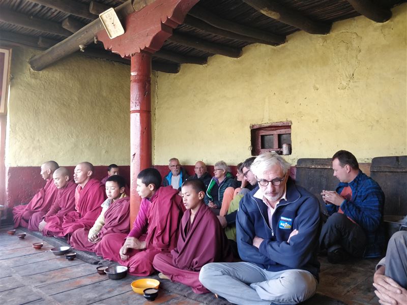 Crossing a gorge at the beginning, the path rises little by little to reach arid alpine pastures. It continues to rise to the Hanuma Pass, marked by its clear ocher rock blades and flags fluttering in the wind. The sight is striking on the Lingshed Circus. The monastery appears in the heart of a beautiful landscape … But there is still 3:30 walk to reach our camp near the monastery. From Hanuma La, the trail takes a steep descent that brings us to a low point at 3980 m before passing the Chapskang La (4200 m). A final rollercoaster ride leads to the camp just before the Lingshed gompa a little greenery surrounds us, and it’s nice.
